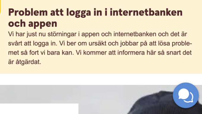 Ett felmeddelande om detta finns på sajten och har också uppmärksammats av kommentarer på bankens Facebook-sida skriver Dagens industri. Ett oväntat fel uppstod. Logga in i internetbanken med din säkerhetsdosa 2.